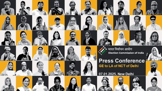 The Election Commission announced the dates for the elections here on Tuesday. Delhi has 70 assembly seats out of which 58 are reserved for general category while 12 seats are reserved for scheduled castes. Chief Election Commissioner Rajiv Kumar said that there are a total of 1.55 crore registered voters in Delhi and among them 83.49 lakh are men and 71.74 lakh are women. He said that the number of young voters (20 to 21 years) is 28.89 lakh while the number of youth eligible to vote for the first time is 2.08 lakh. There will be a total of 13,033 polling stations at 2697 places in the capital and 210 of these will be model polling stations. He said that extensive discussions have been held with various law enforcement agencies in connection with the preparations for the Delhi Assembly elections, which also includes security related aspects. There is a triangular contest between Aam Aadmi Party (AAP), Bharatiya Janata Party (BJP) and Congress in the capital Delhi. 36 MLAs are required for majority in the Delhi Assembly.